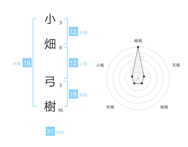 小畑 弓樹さんの総格は31画の5点!
