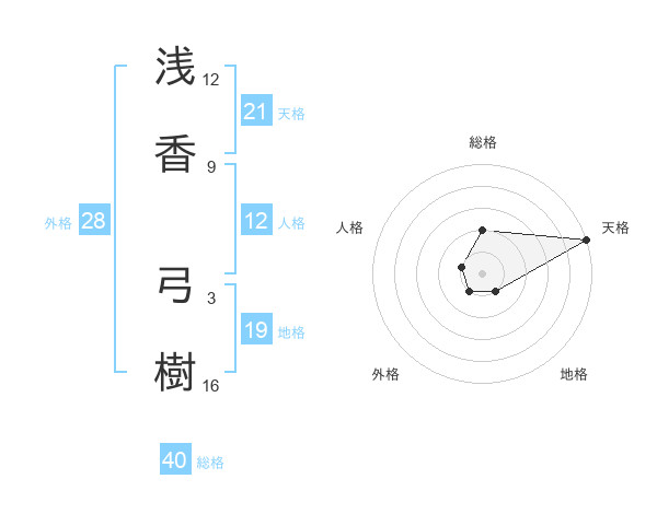 浅香 弓樹さんの天格は21画の5点!