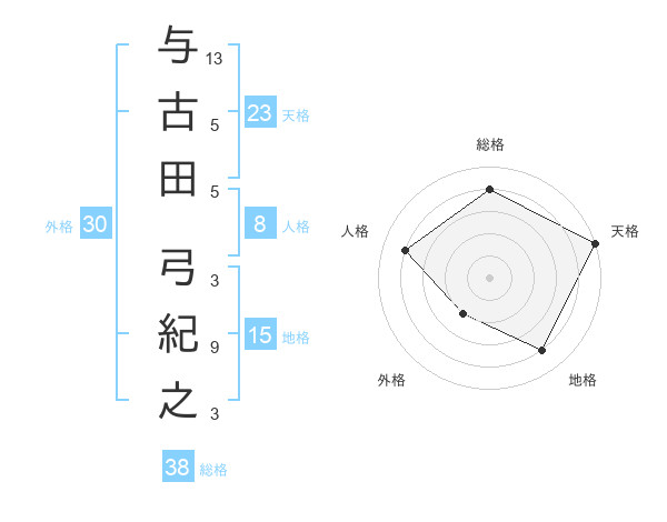 与古田 弓紀之さんの天格は23画の5点!