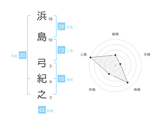 浜島 弓紀之さんの天格は28画の1点!