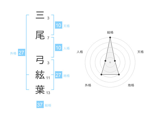 三尾 弓絃葉さんを姓名の画数から五運を鑑定