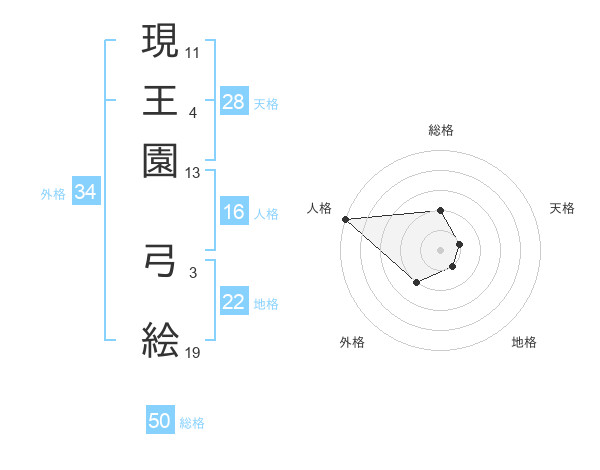 現王園 弓絵さんを姓名の画数から五運を鑑定