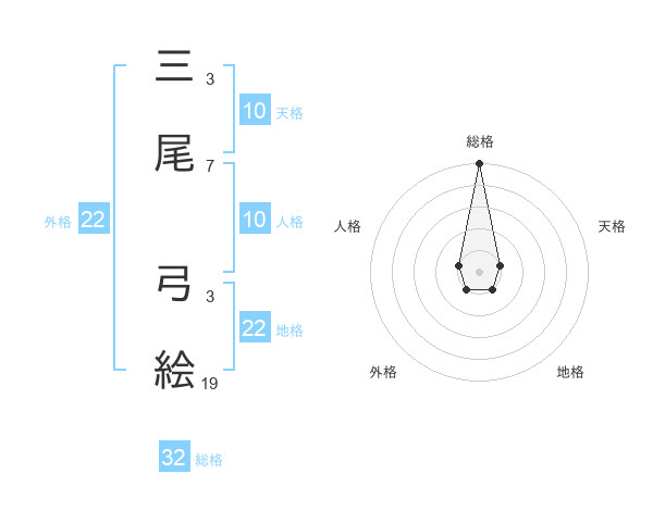 三尾 弓絵さんを姓名の画数から五運を鑑定