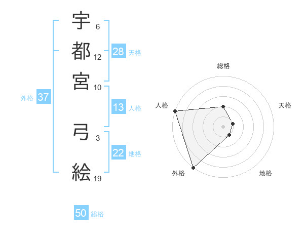 宇都宮 弓絵さんを姓名の画数から五運を鑑定