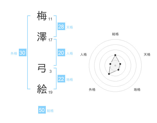 梅澤 弓絵さんの総格は50画の2点!