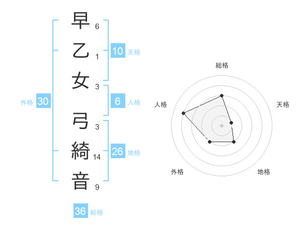 早乙女 弓綺音さんを姓名の画数から五運を鑑定