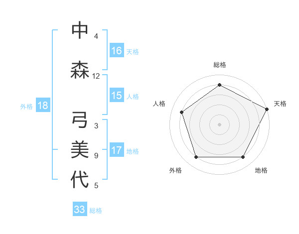 中森 弓美代さんの総格は33画の4点!