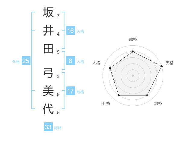 坂井田 弓美代さんの天格は16画の5点!