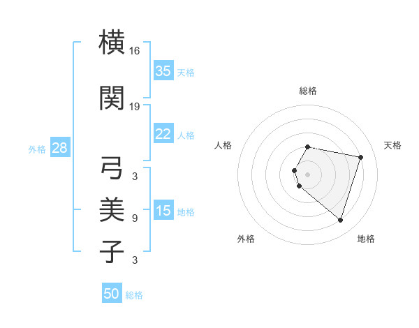 横関 弓美子さんを姓名の画数から五運を鑑定