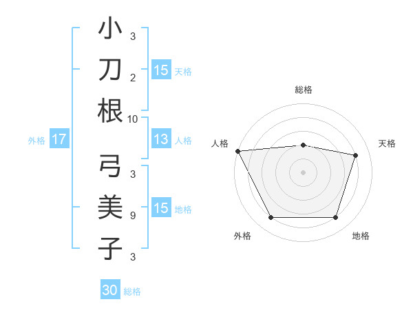 小刀根 弓美子さんを姓名の画数から五運を鑑定