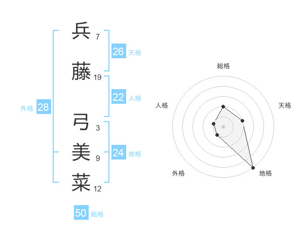 兵藤 弓美菜さんを姓名の画数から五運を鑑定