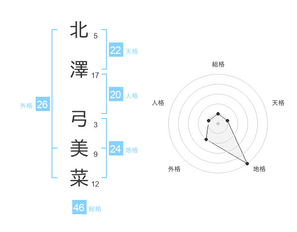 北澤 弓美菜さんを姓名の画数から五運を鑑定