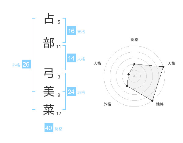 占部 弓美菜さんの天格は16画の5点!