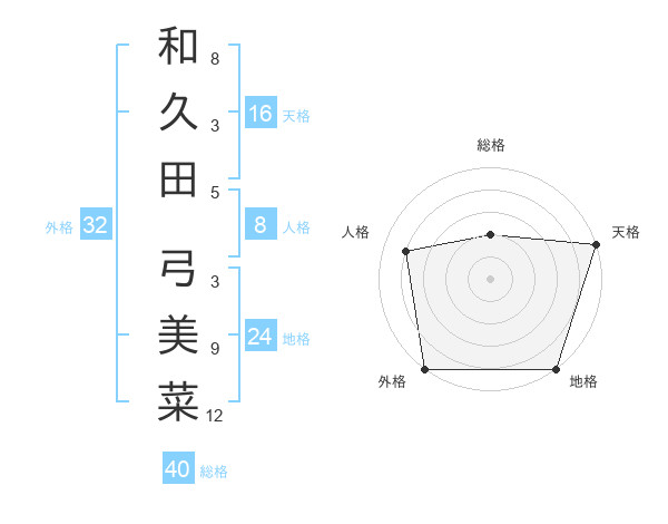和久田 弓美菜さんを姓名の画数から五運を鑑定