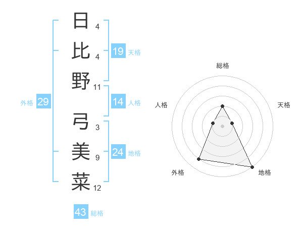 日比野 弓美菜さんを姓名の画数から五運を鑑定