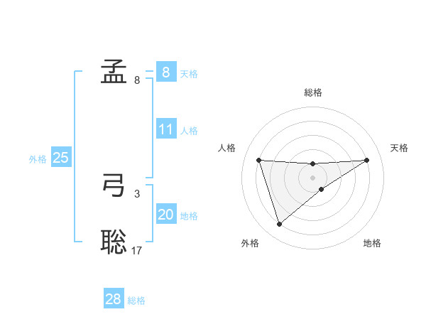 孟 弓聡さんを姓名の画数から五運を鑑定