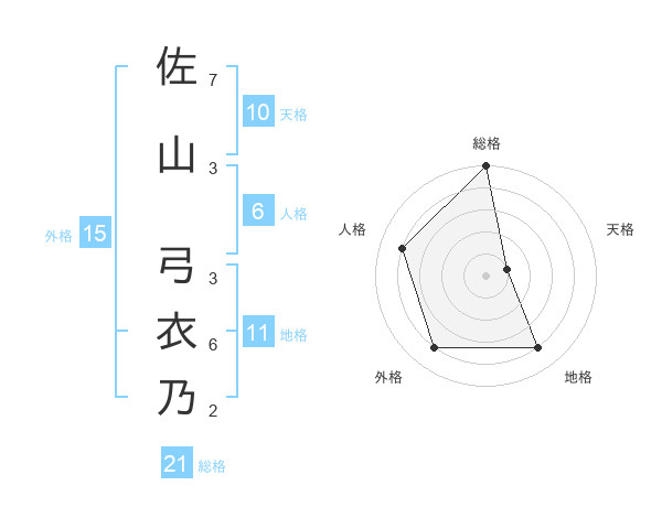 佐山 弓衣乃さんの総格は21画の5点!
