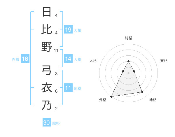 日比野 弓衣乃さんを姓名の画数から五運を鑑定