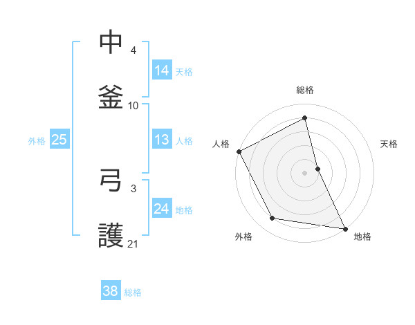 中釜 弓護さんを姓名の画数から五運を鑑定