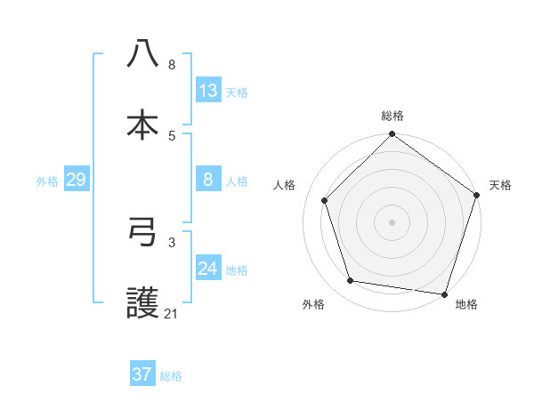 八本 弓護さんの総格は37画の5点!