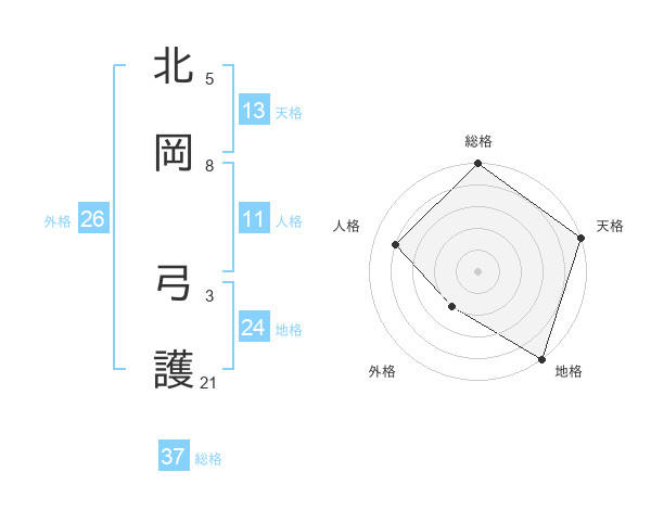 北岡 弓護さんの総格は37画の5点!