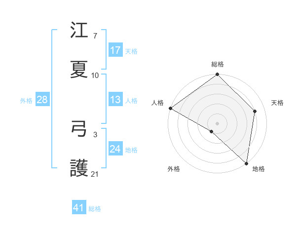 江夏 弓護さんを姓名の画数から五運を鑑定