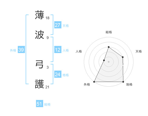 薄波 弓護さんを姓名の画数から五運を鑑定