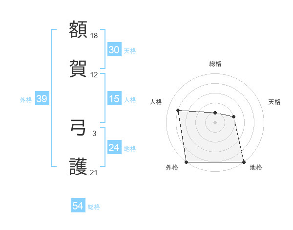 額賀 弓護さんの外格は39画の5点!