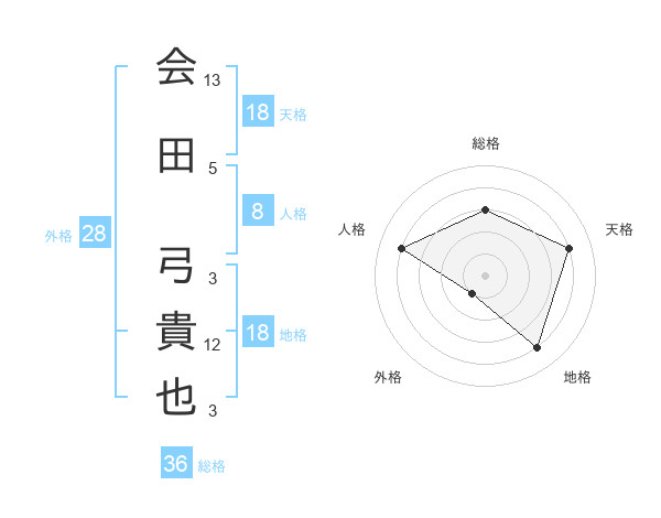 会田 弓貴也さんの天格は18画の4点!