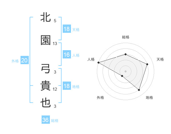 北園 弓貴也さんの天格は18画の4点!
