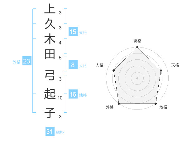 上久木田 弓起子さんを姓名の画数から五運を鑑定