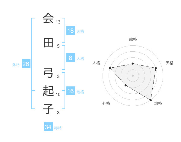 会田 弓起子さんの総格は34画の2点!