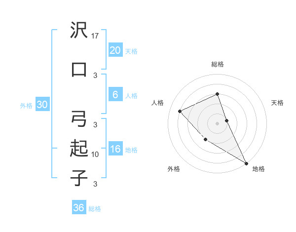 沢口 弓起子さんを姓名の画数から五運を鑑定
