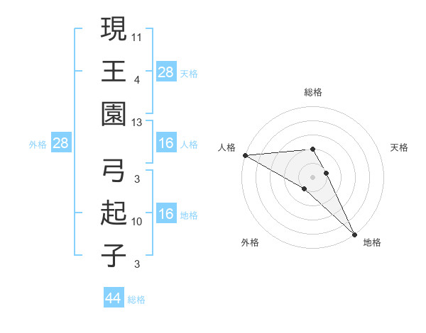 現王園 弓起子さんを姓名の画数から五運を鑑定