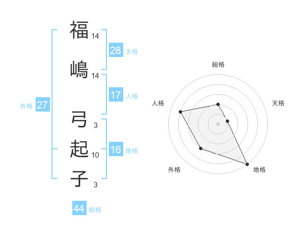 福嶋 弓起子さんを姓名の画数から五運を鑑定