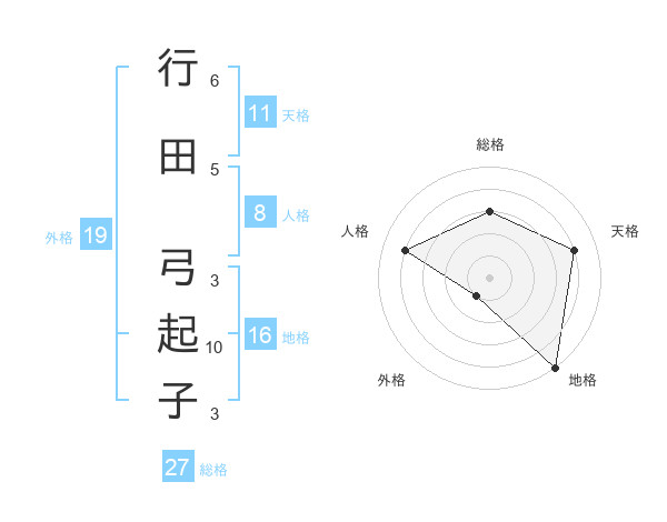 行田 弓起子さんを姓名の画数から五運を鑑定