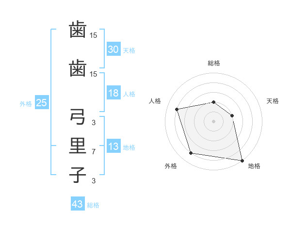 歯歯 弓里子さんの天格は30画の2点!