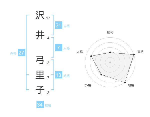 沢井 弓里子さんを姓名の画数から五運を鑑定
