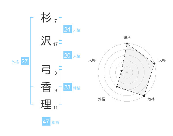 杉沢 弓香理さんを姓名の画数から五運を鑑定
