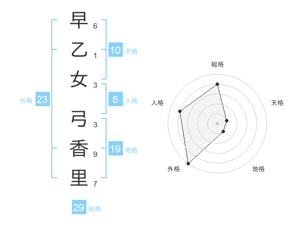 早乙女 弓香里さんを姓名の画数から五運を鑑定