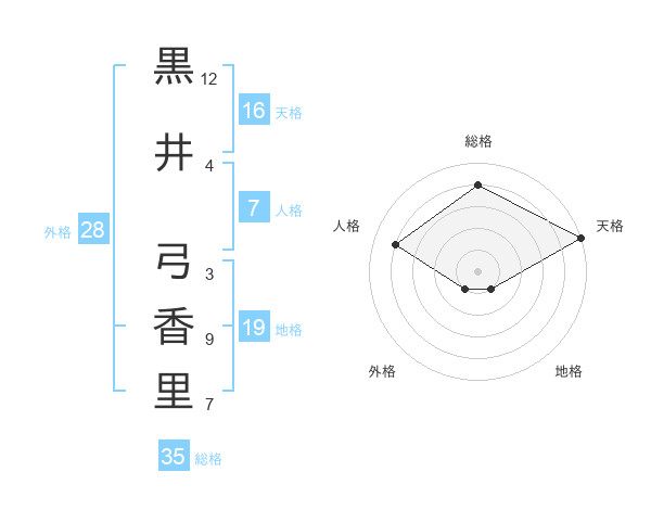 黒井 弓香里さんの総格は35画の4点!