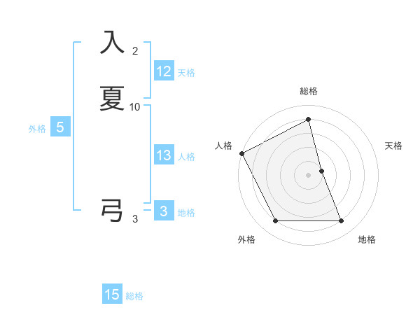 入夏 弓さんの総格は15画の4点!