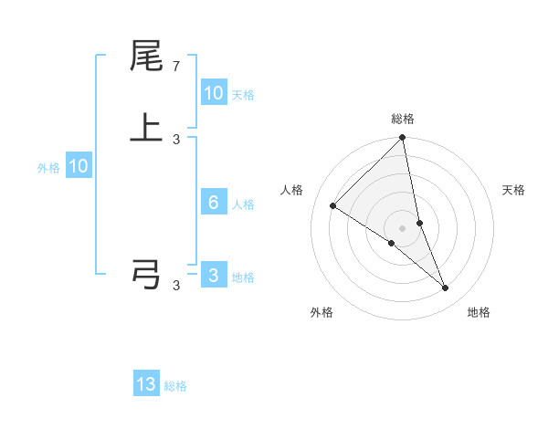 尾上 弓さんの総格は13画の5点!