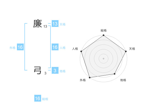 廉 弓さんの天格は13画の5点!