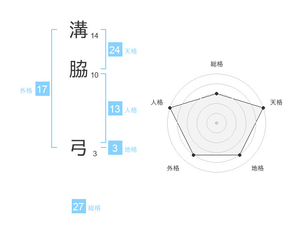 溝脇 弓さんの総格は27画の3点!