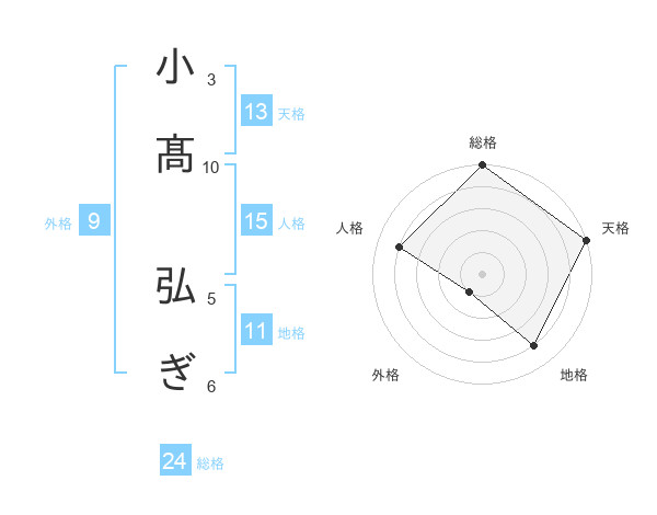 小髙 弘ぎさんを姓名の画数から五運を鑑定