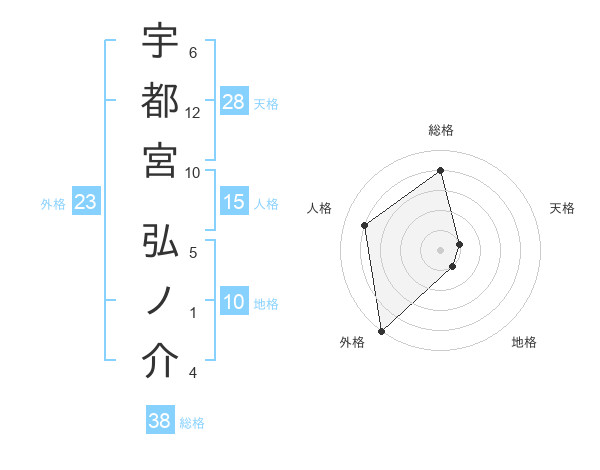 宇都宮 弘ノ介さんの総格は38画の4点!