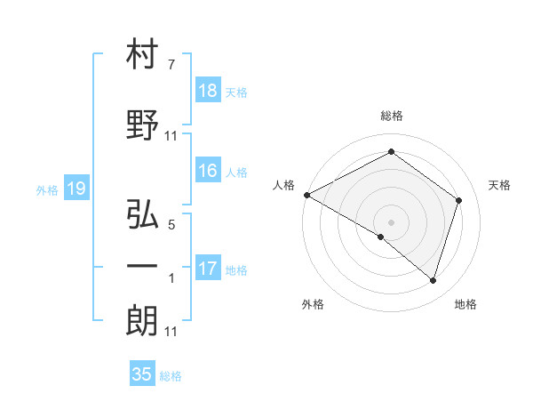 村野 弘一朗さんを姓名の画数から五運を鑑定