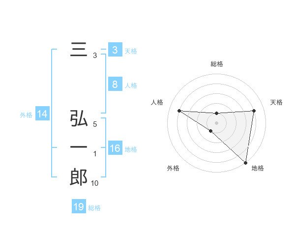 三 弘一郎さんの総格は19画の1点!