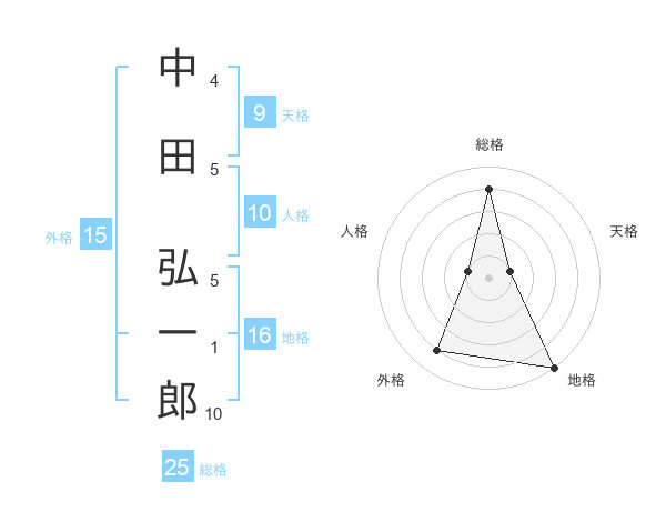 中田 弘一郎さんを姓名の画数から五運を鑑定